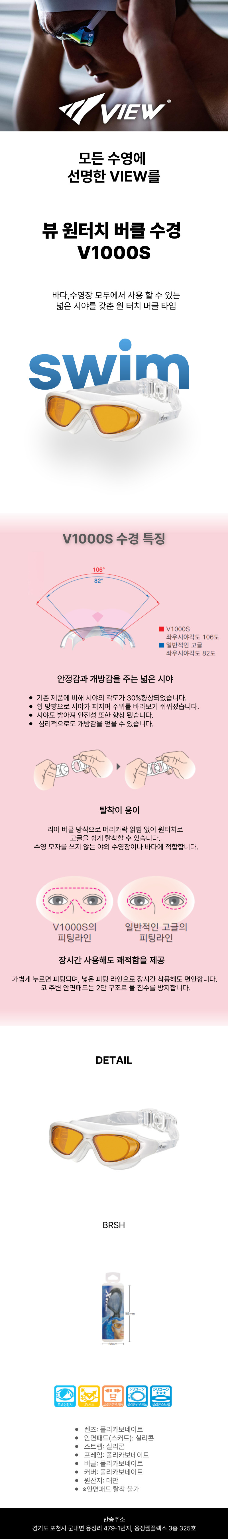 뷰 원터치 버클 수경 V1000S BR