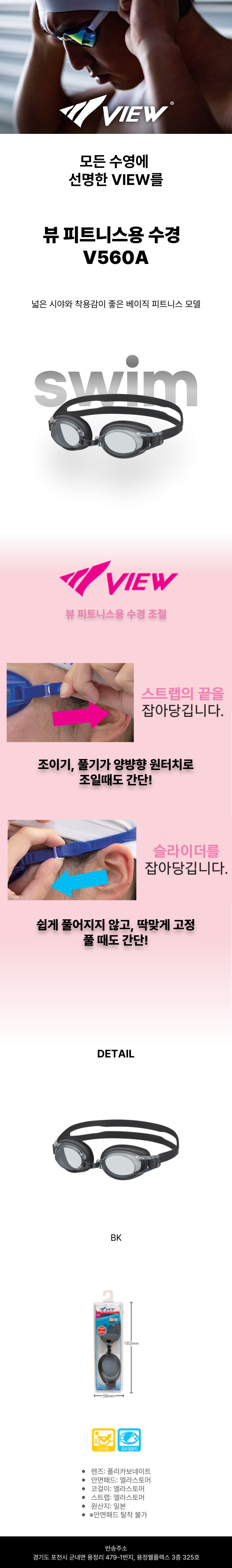 뷰 피트니스용 수경 V560A BK