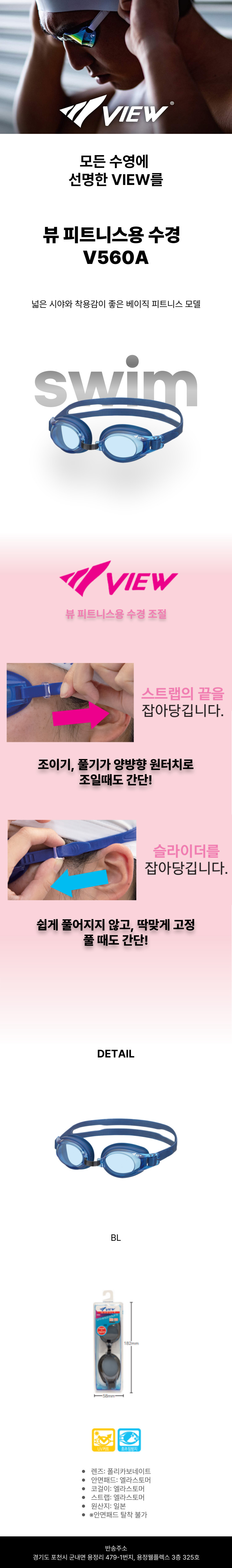 뷰 피트니스용 수경 V560A BL