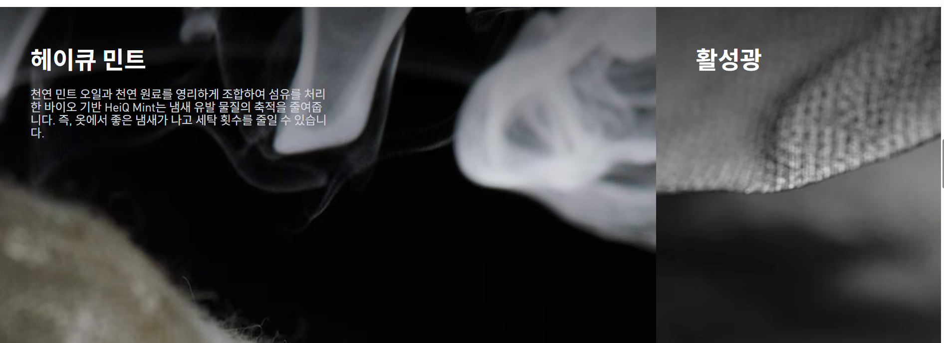 바이오 기반 HeiQ Mint 처리로 효과적인 냄새 억제