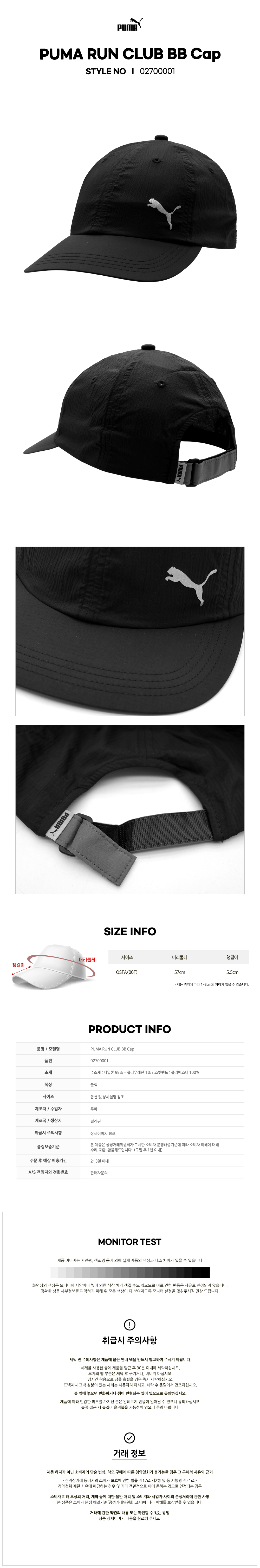 푸마 런 클럽 베이스볼 캡(02700001) 푸마 모자