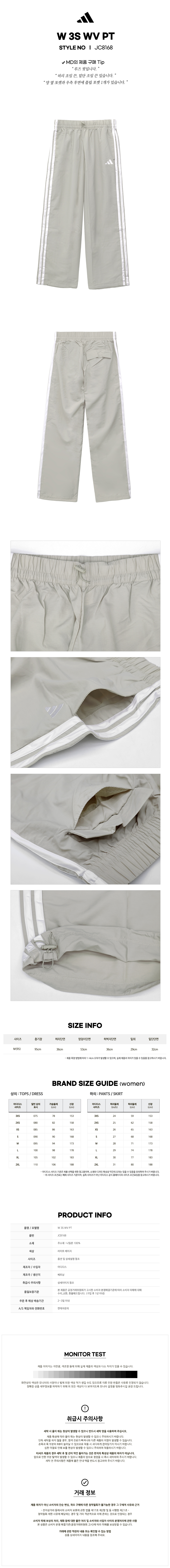 에센셜 3S 라이프스타일 우븐 파라슈트 팬츠 W(JC8168) 아디다스 긴바지