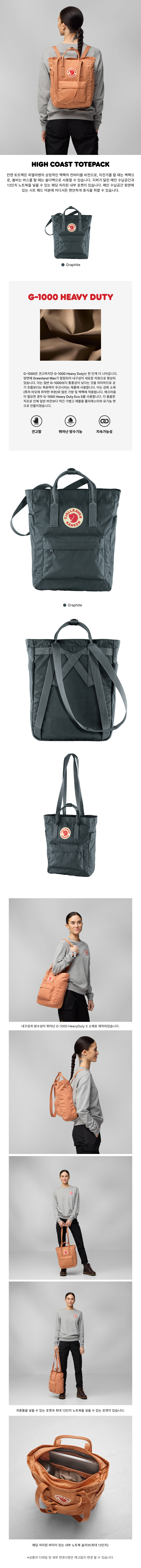 칸켄 토트팩은 피엘라벤의 상징적인 백팩의 컨버터블 버전으로, 자전거를 탈 때는 백팩으로, 붐비는 버스를 탈 때는 숄더백으로 사용할 수 있습니다. 지퍼가 달린 메인 수납공간과 13인치 노트북을 넣을 수 있는 패딩 처리된 내부 포켓이 있습니다. 메인 수납공간 뒷면에 있는 시트 패드 덕분에 어디서든 편안하게 휴식을 취할 수 있습니다.