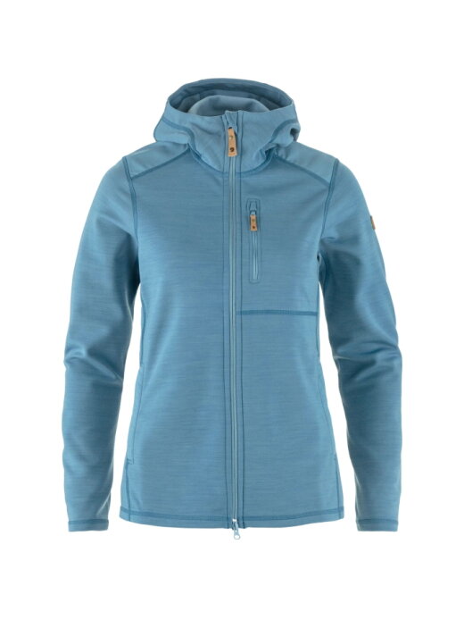 보온성과 습기 배출 기능이 뛰어난 플리스 후디입니다. 사계절 활동 시 중간 레이어로 착용하기 좋습니다. 재활용 폴리에스터와 추적 가능한 울 혼방 소재로 제작되었으며, 어깨 부분은 G-1000 소재로 보강되어 마모가 심한 부위의 활동성과 내구성을 향상시켰습니다.