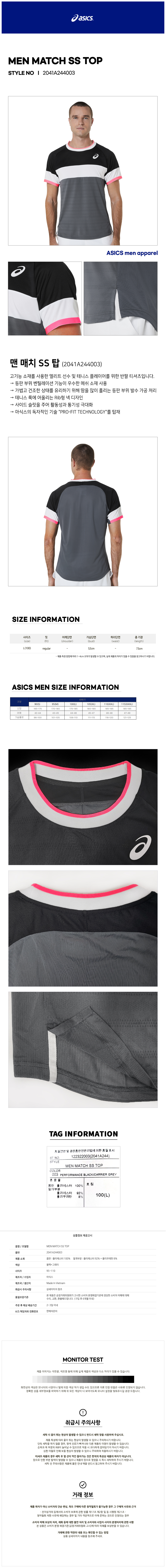 맨 매치 SS 탑(2041A244003) 아식스 남자 반팔 라운드 티셔츠