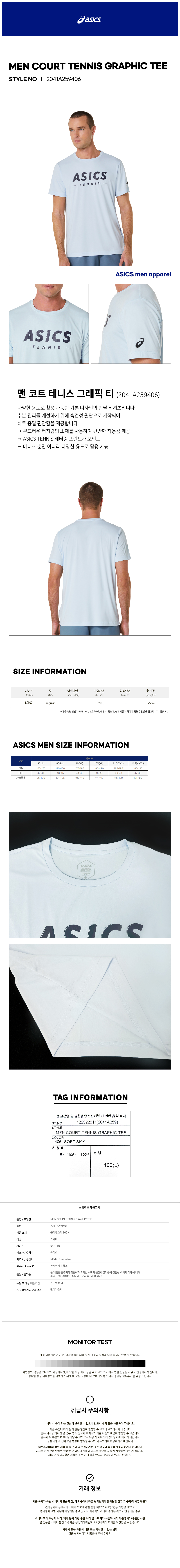 맨 코트 테니스 그래픽 티(2041A259406) 아식스 남자 반팔 라운드 티셔츠