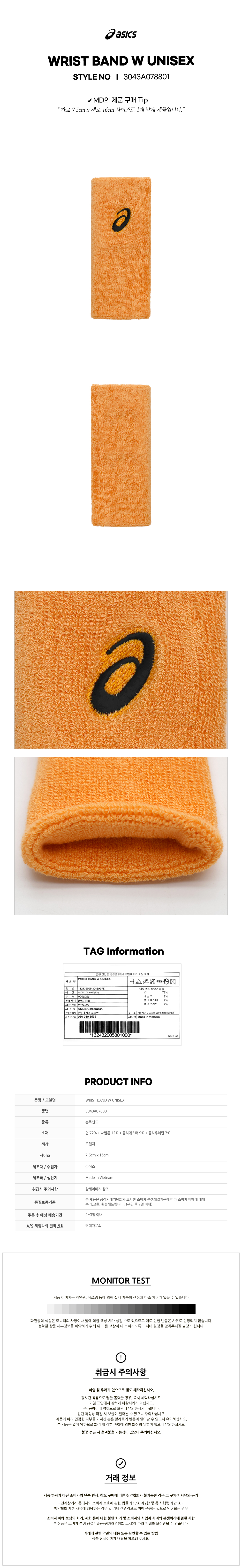 리스트 밴드 와이드(3043A078801) 아식스 손목밴드