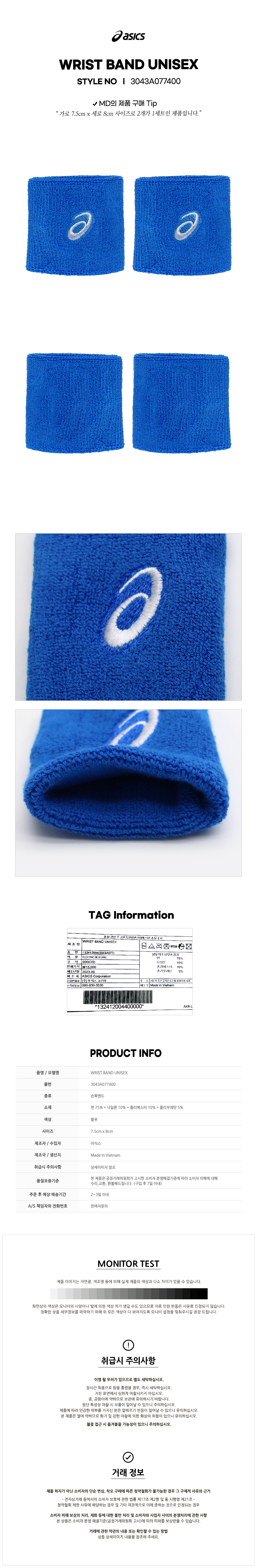 리스트 밴드(3043A077400) 아식스 손목밴드