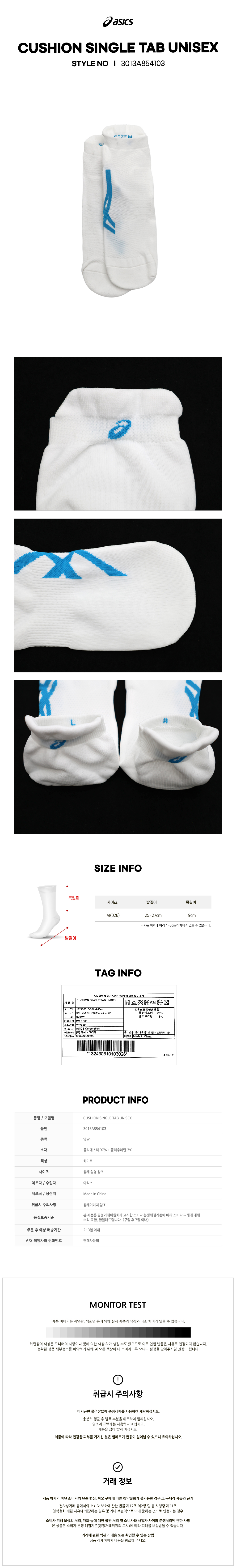 쿠션 싱글 탭 삭스(3013A854103) 아식스 양말