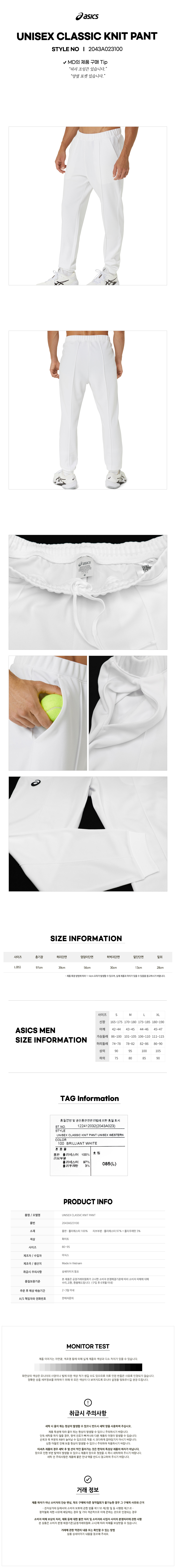 유니섹스 클래식 니트 팬츠(2043A023100) 아식스 긴바지