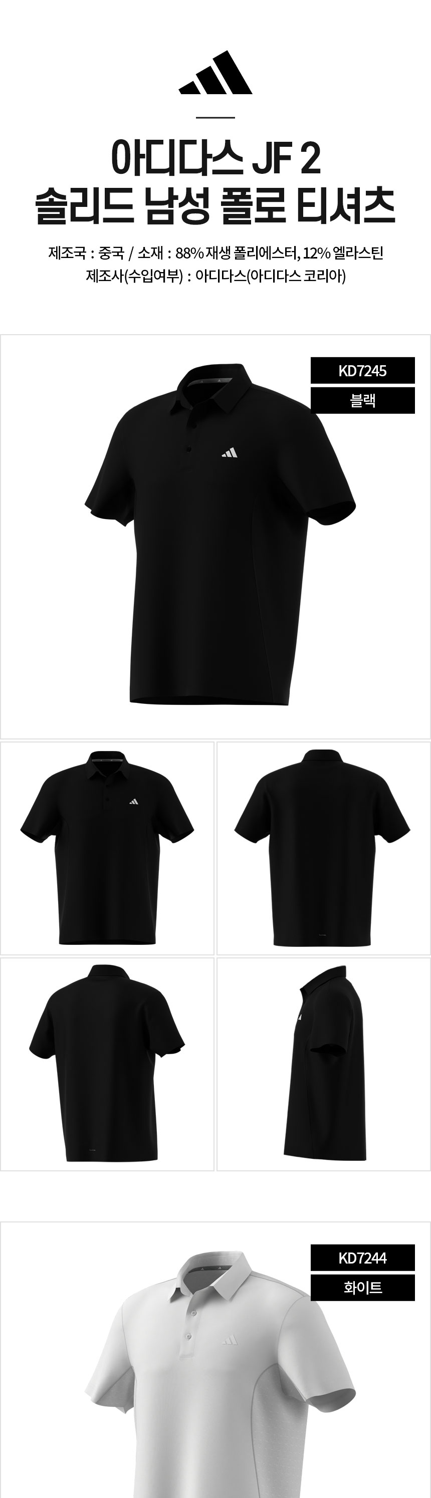 아디다스 JF 2 솔리드 남성 폴로 카라 반팔 티셔츠 남자 골프웨어 KD7244 KD7245 KD7246