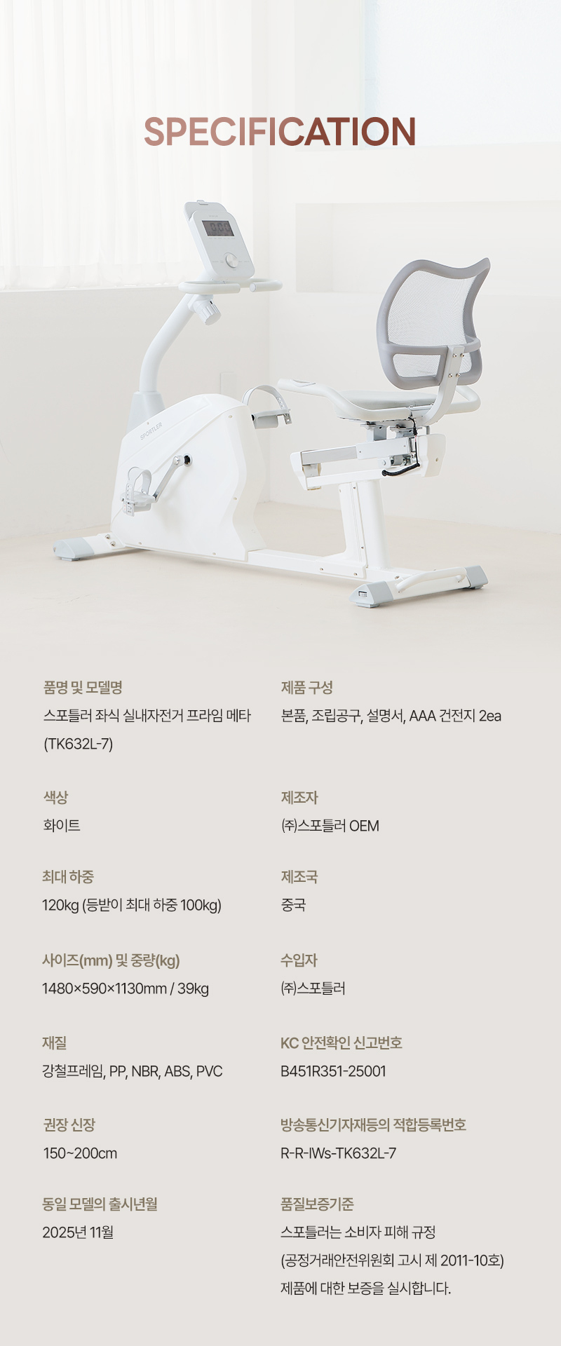 스포틀러 좌식 실내자전거 프라임 메타 (TK632L-7)