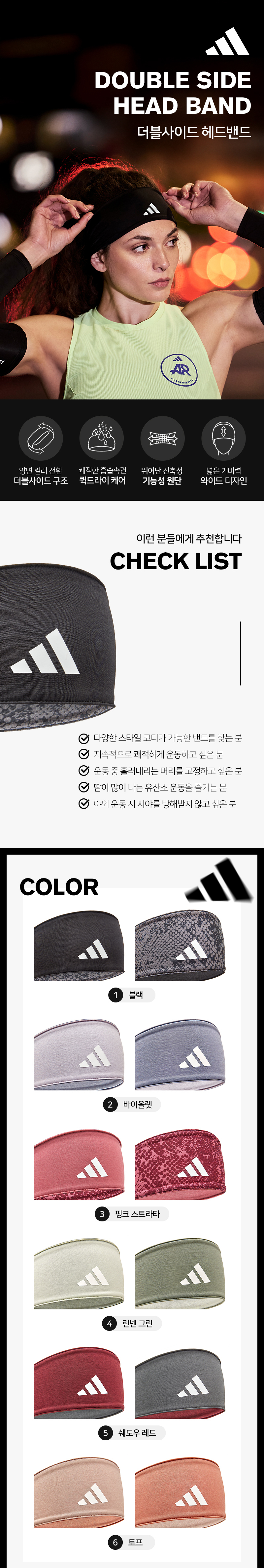 아디다스 더블사이드 헤드밴드 6종 택1