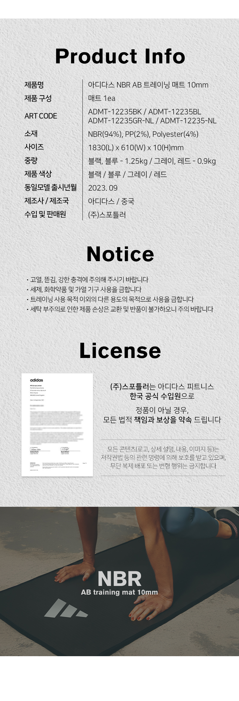 아디다스 AB 트레이닝매트 10mm 4종 택1