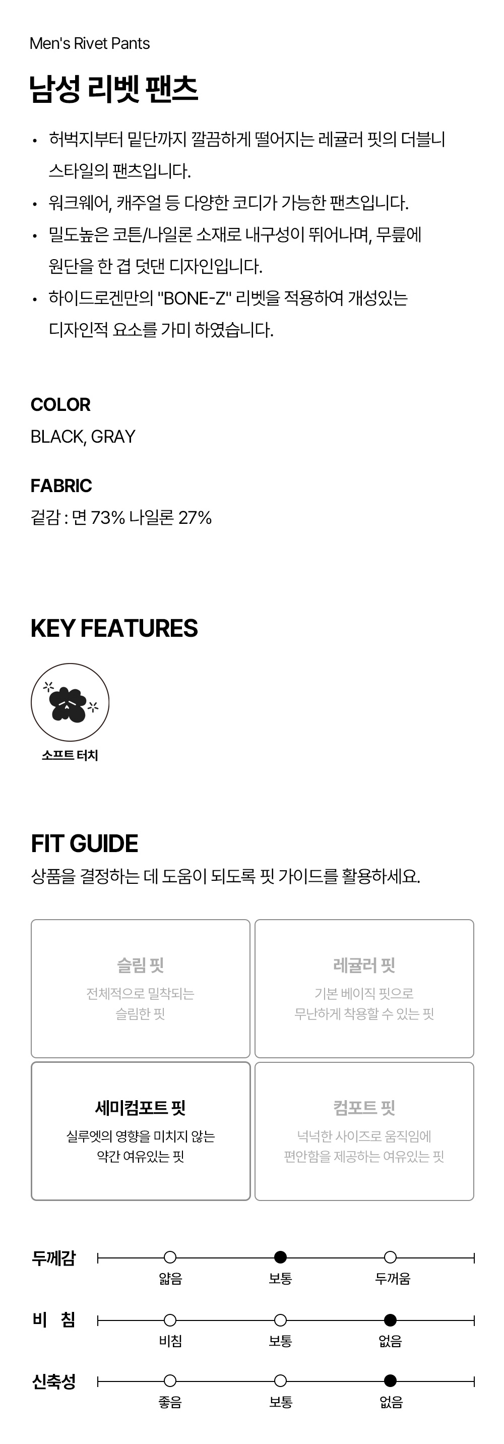 남성 리벳 팬츠