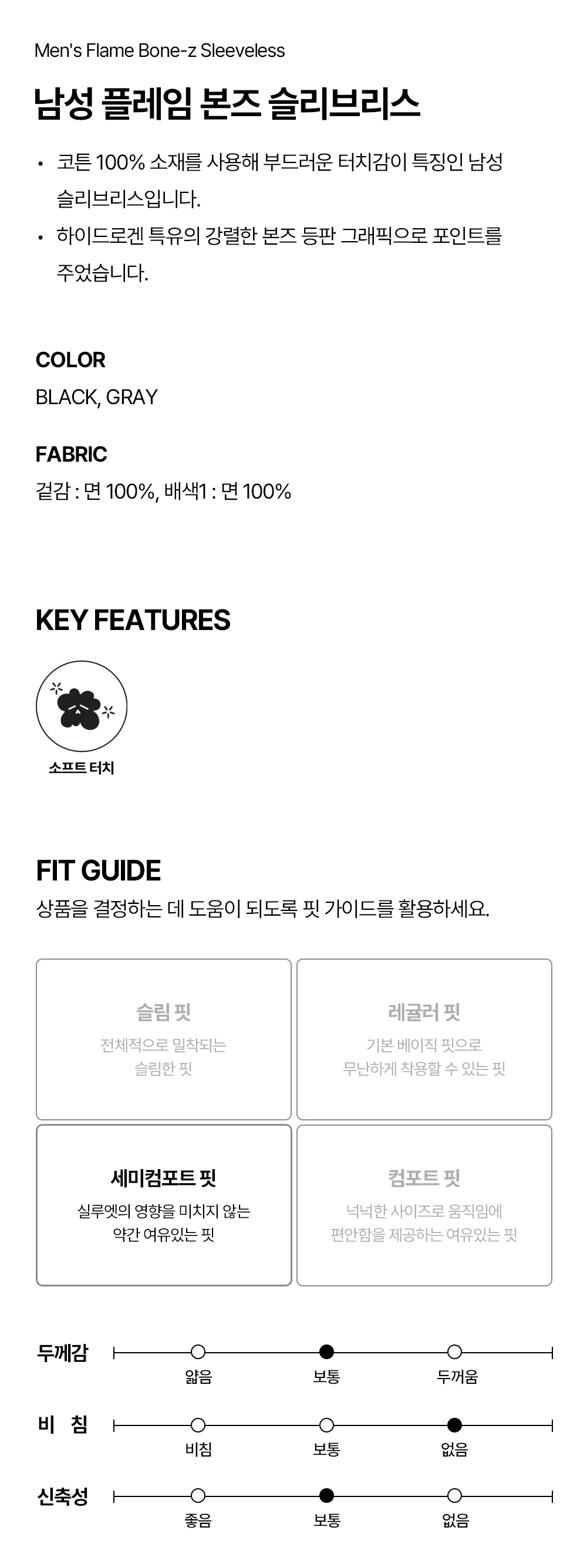 남성 플레임 본즈 슬리브리스