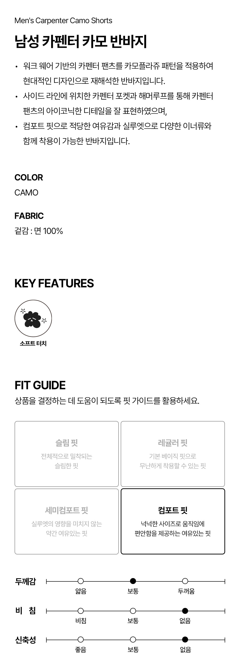 남성 카펜터 카모 반바지