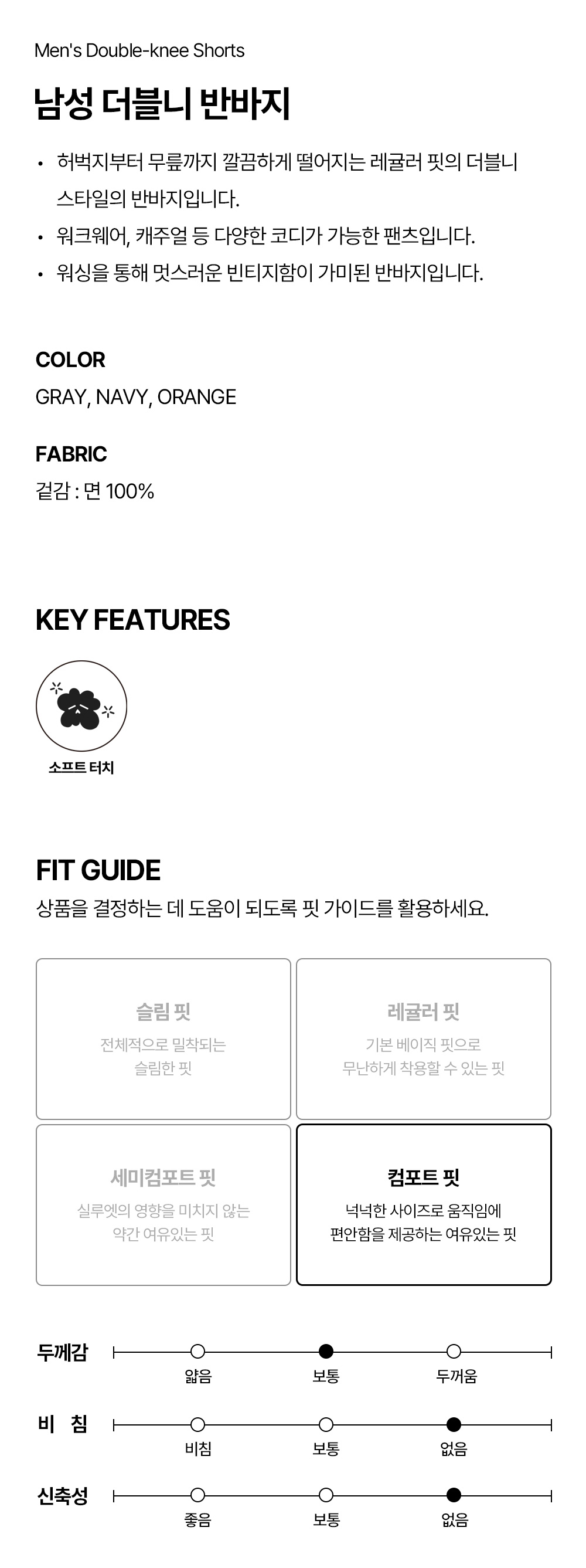 남성 더블니 반바지