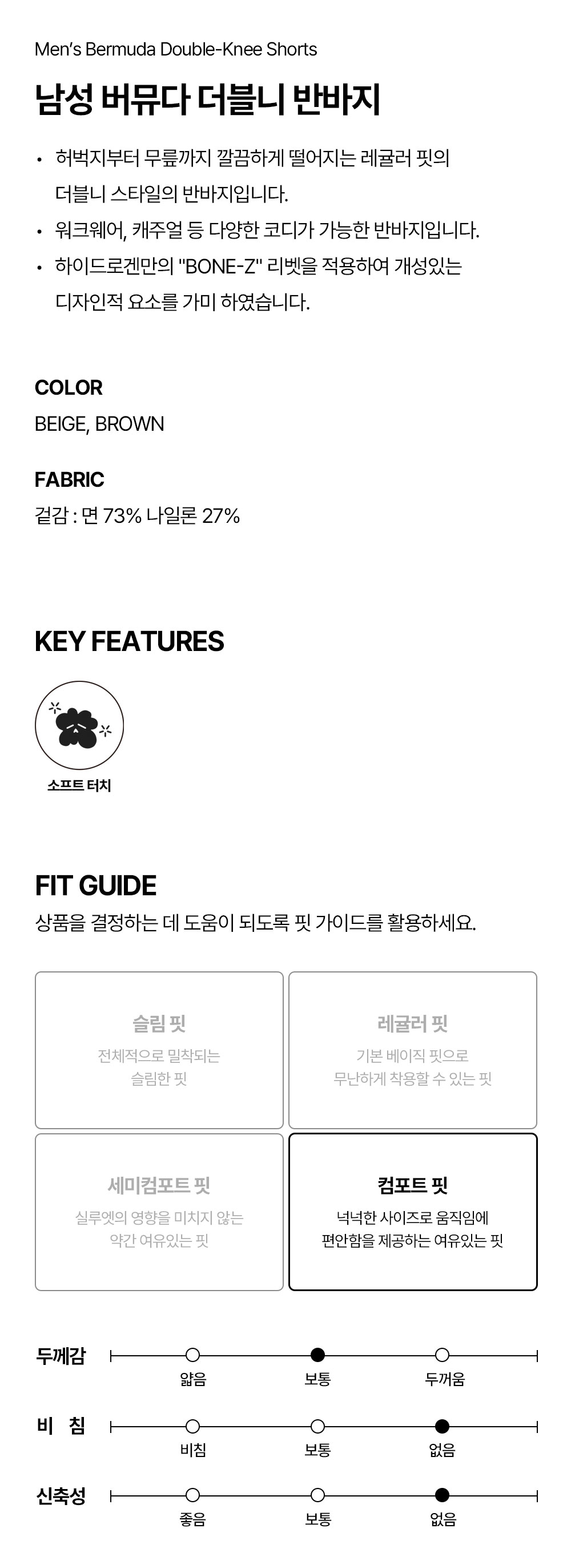 남성 버뮤다 더블니 반바지