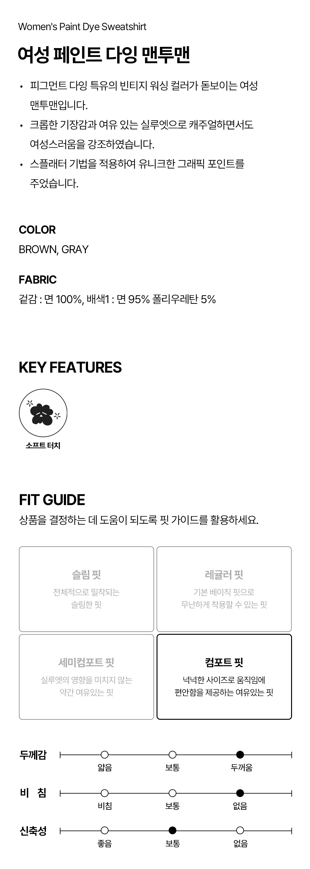 여성 페인트 다잉 맨투맨