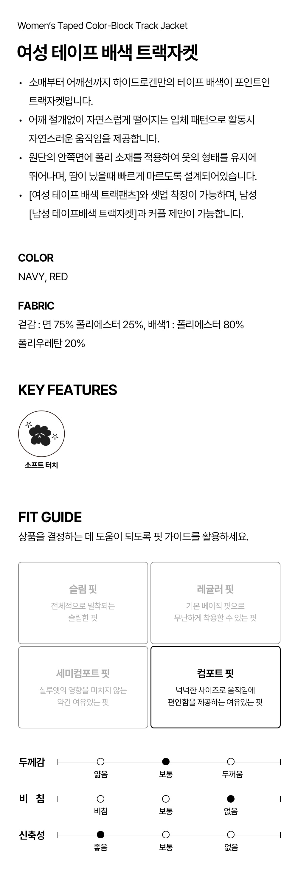 여성 테이프 배색 트랙자켓