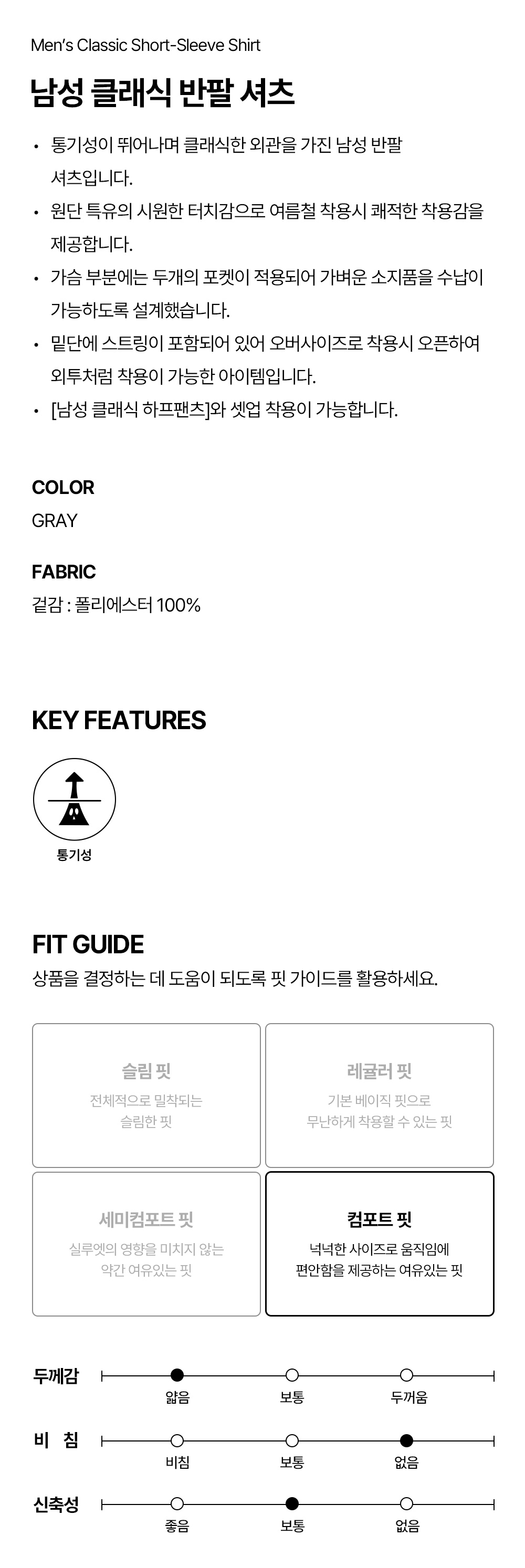 남성 클래식 반팔 셔츠