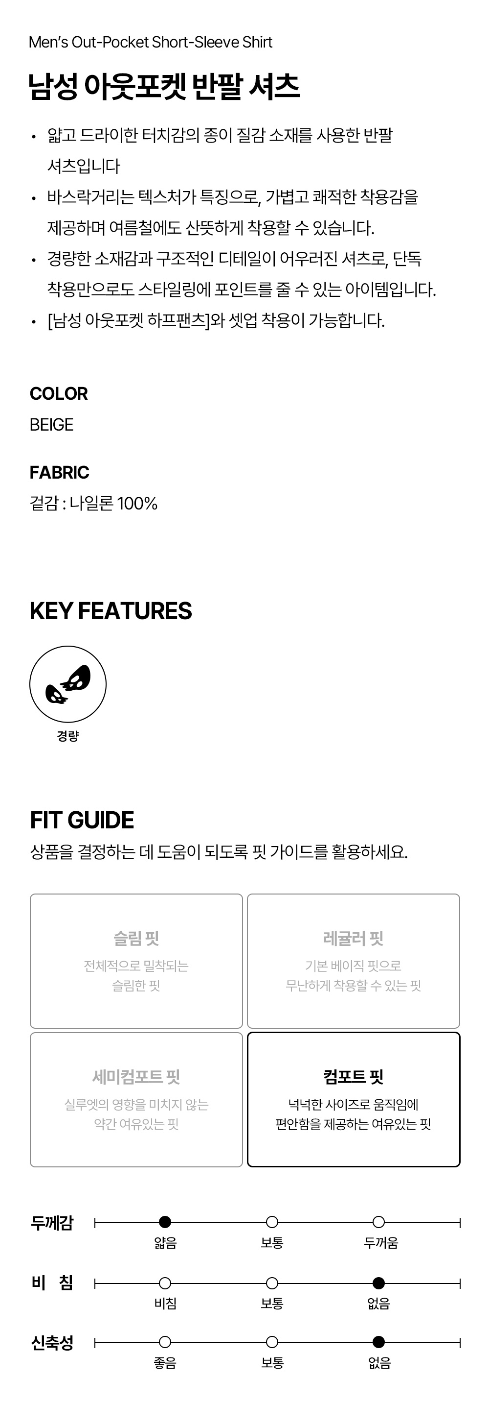 남성 아웃포켓 반팔 셔츠