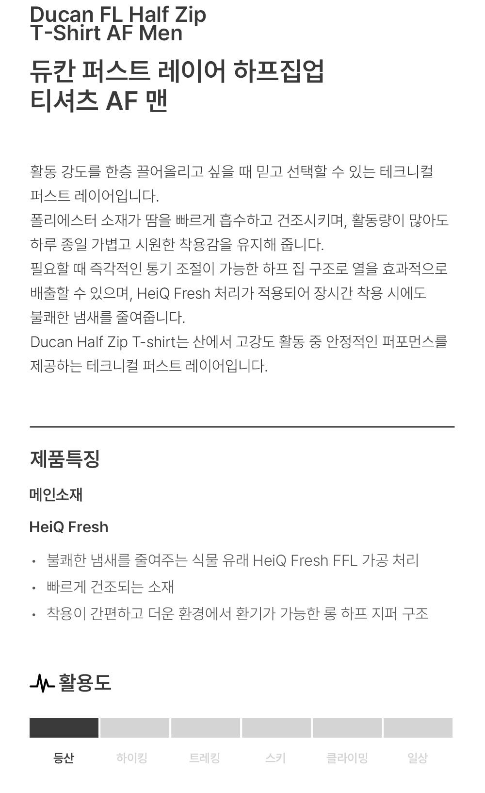 듀칸 퍼스트 레이어 하프집업 티셔츠 AF 맨