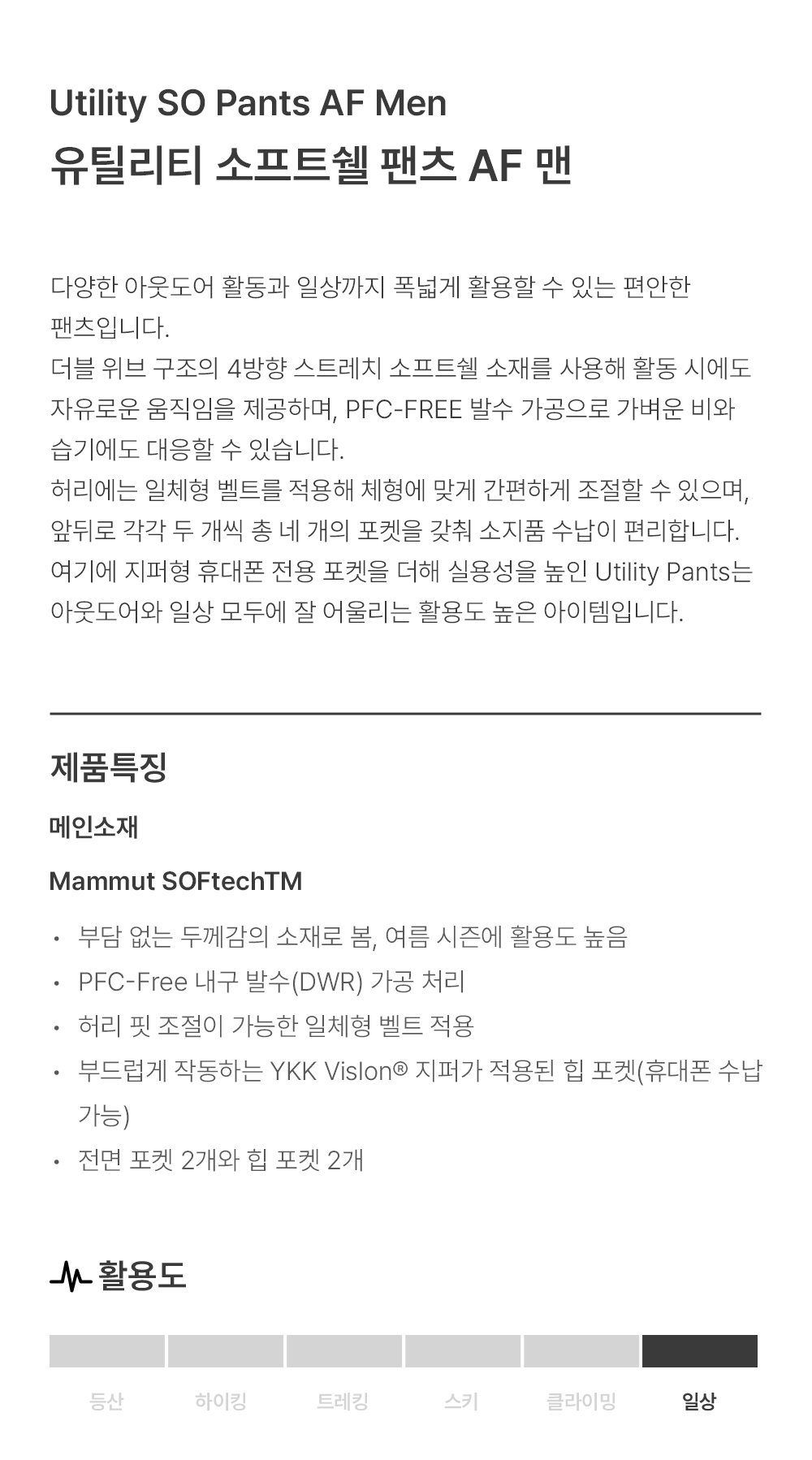 유틸리티 소프트쉘 팬츠 AF 맨