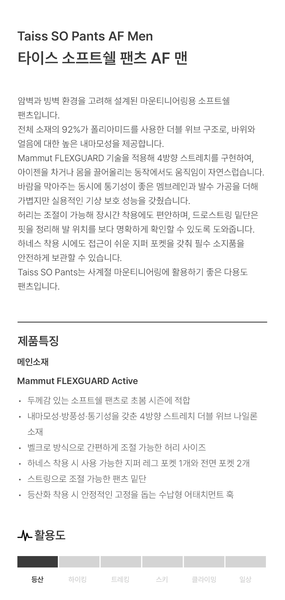 타이스 소프트쉘 팬츠 AF 맨