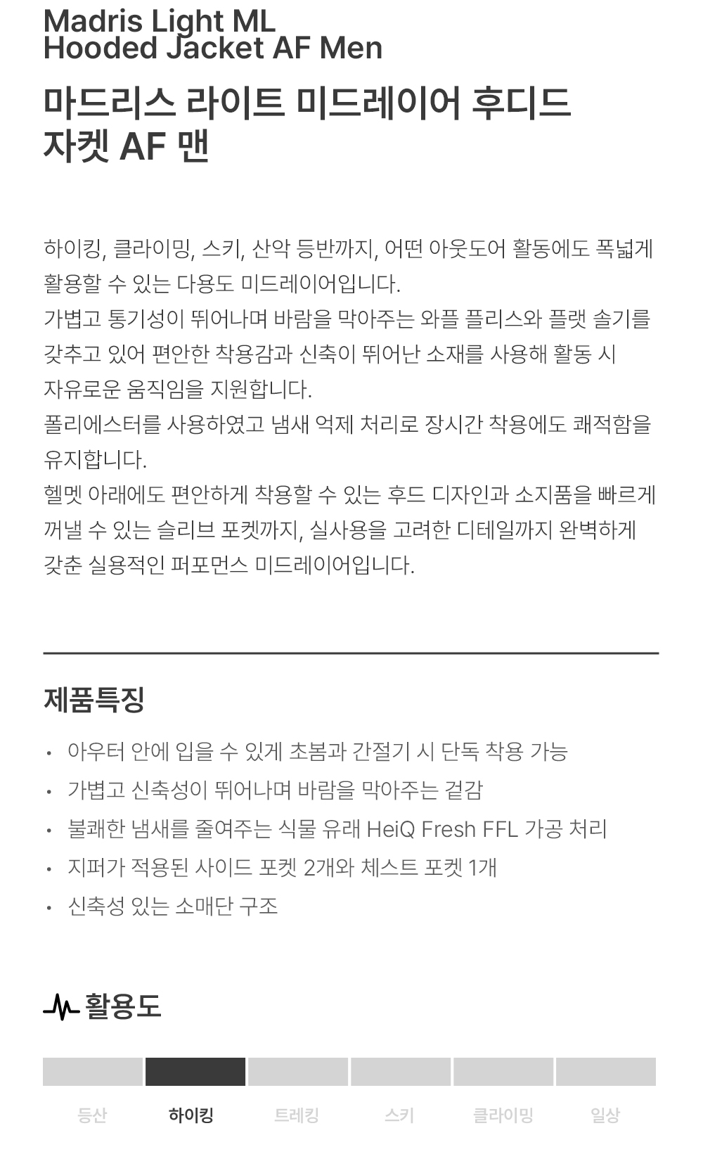 마드리스 라이트 미드레이어 후디드 자켓 AF 맨