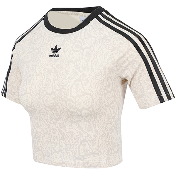 아디다스 W 스네이크 올오버 프린트 3스트라이프 베이비 반팔 크롭티 (JI8407)