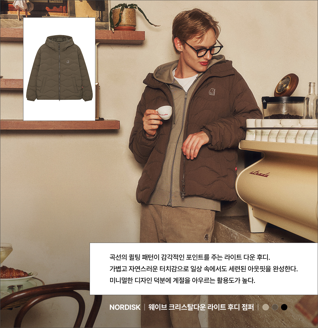 웨이브 크리스탈다운 라이트 후디 점퍼 - U (OLIVE KHAKI)