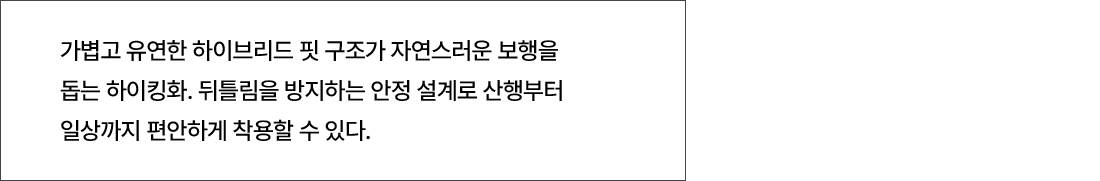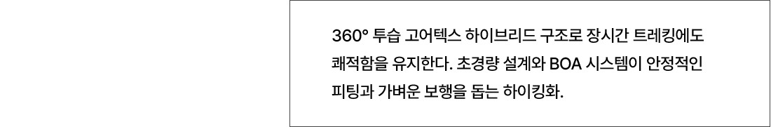 가볍고 편안한 고어텍스 하이브리드 구조